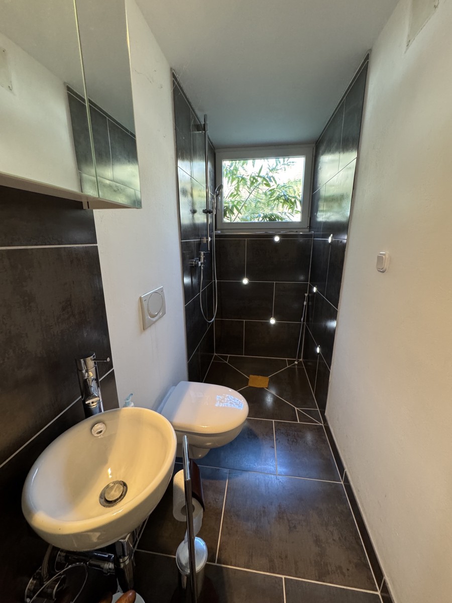 Da sich das Haus in leichter Hanglage befindet sind die Räume im Untergeschoss auf der Südseite ebenfalls hell und sonnig.